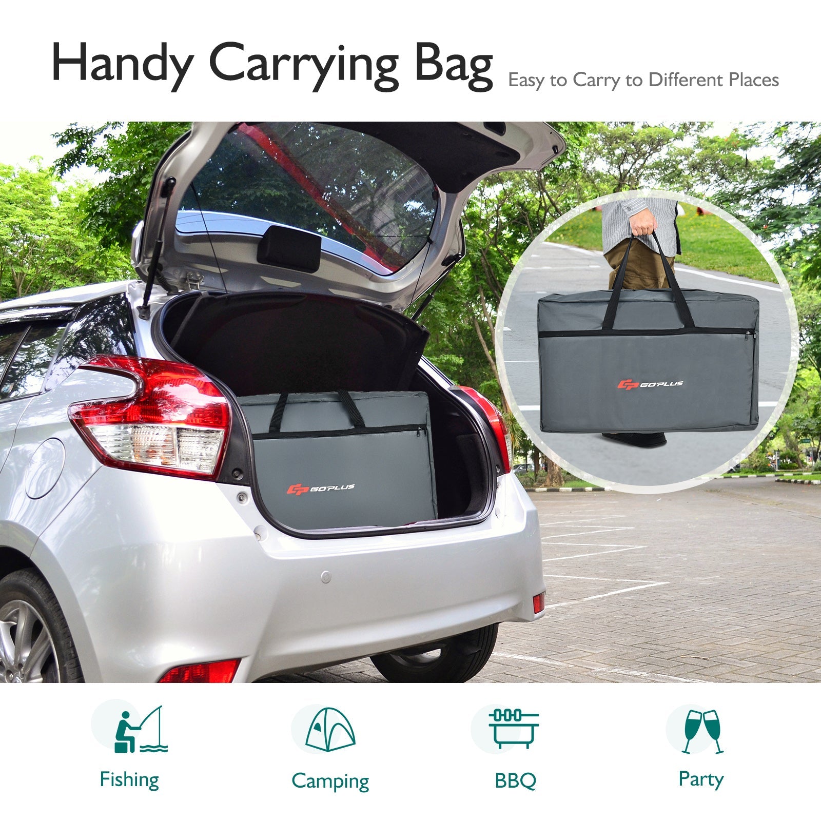 Equipped with 2 side tables and large countertop this folding grill table owns the large storing capacity for various condiments and cooking utensils. Made of high quality steel frame and oxford fabric the kitchen station is sturdy and durable for outdoor use. All parts are packed in the carrying bag perfect for outdoor activities like camping spring outing etc. With the detailed user manual you also won't find any difficulty assembling the grill table. If you are looking for a folding grill table like this don't hesitate to buy it. 2 side tables and large countertop greatly enlarge the storing space Tabletop with windscreen for more effective burning Premium aluminum and steel structure is stable and firm Large heat-resistant tabletop for most stoves and coolers Packed in the a carry bag convenient transportation Round edge corner protecting your kids from being hit Compact size store neatly in your trunk Rubber sleeve to prevent the table from skidding Easy to assemble with the detailed user manual Perfect for picnics backyard barbecues tailgating parties or an overnight hit outdoors Installation guide