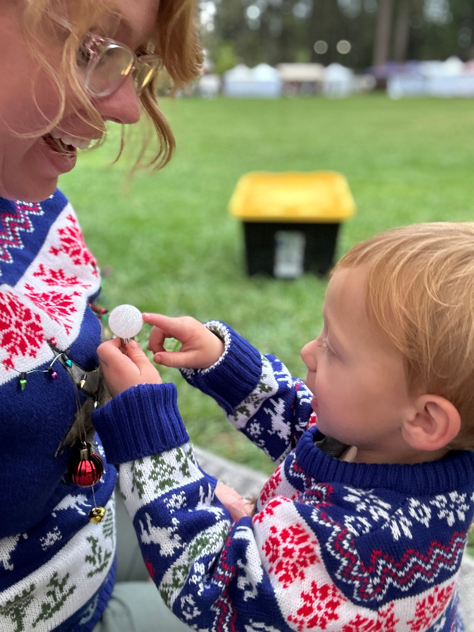 ORNAMENTS -Sweaters come sans ornaments, but an Embellishment Kit is available as an ADD-ON Item so you can choose to decorate your coo (or not) as you’d like - and remove bobbles for washing. The kit to includes a little string of fake Christmas lights, 3 ornaments, 2 bells, a bow and red puff ball nose. Also includes strings for bobbles and pins for attaching.