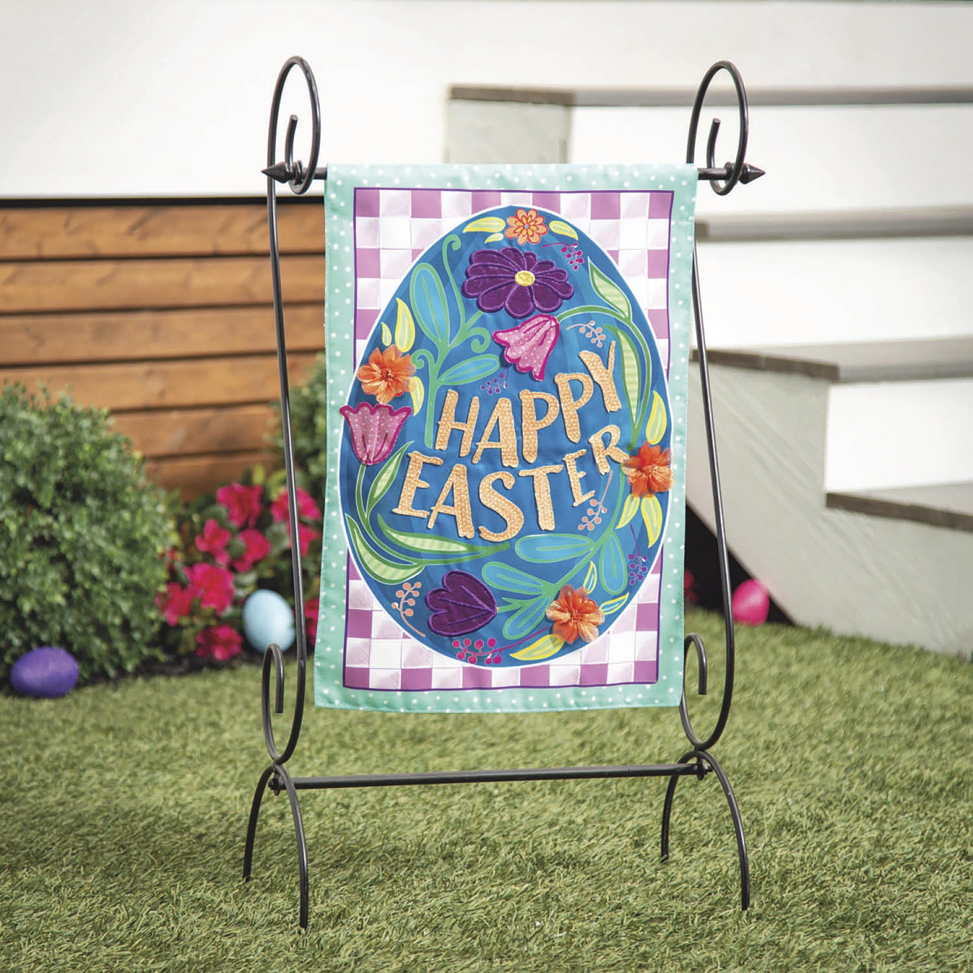 Happy Easter Egg Applique Garden Flag
