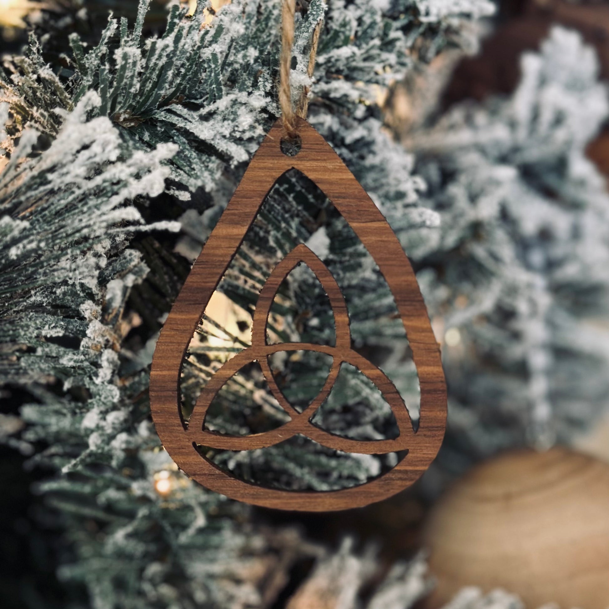 Every pattern is hand drawn and laser cut here locally in Paradise, CA, some patterns exclusively designed for Thistle & Stitch. Ornaments measure between approximately 2.5" - 3.75" in diameter.