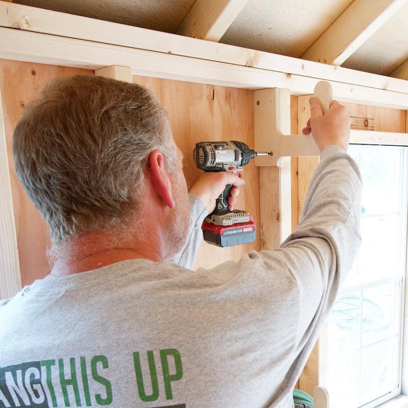 Our unique "stud mount" design gives added strength and our products "self level" when the device is placed against the exterior sheathing of your shed. Hangthis Up devices are custom designed to "fit" the variety of items you store in your shed so they look great when installed.