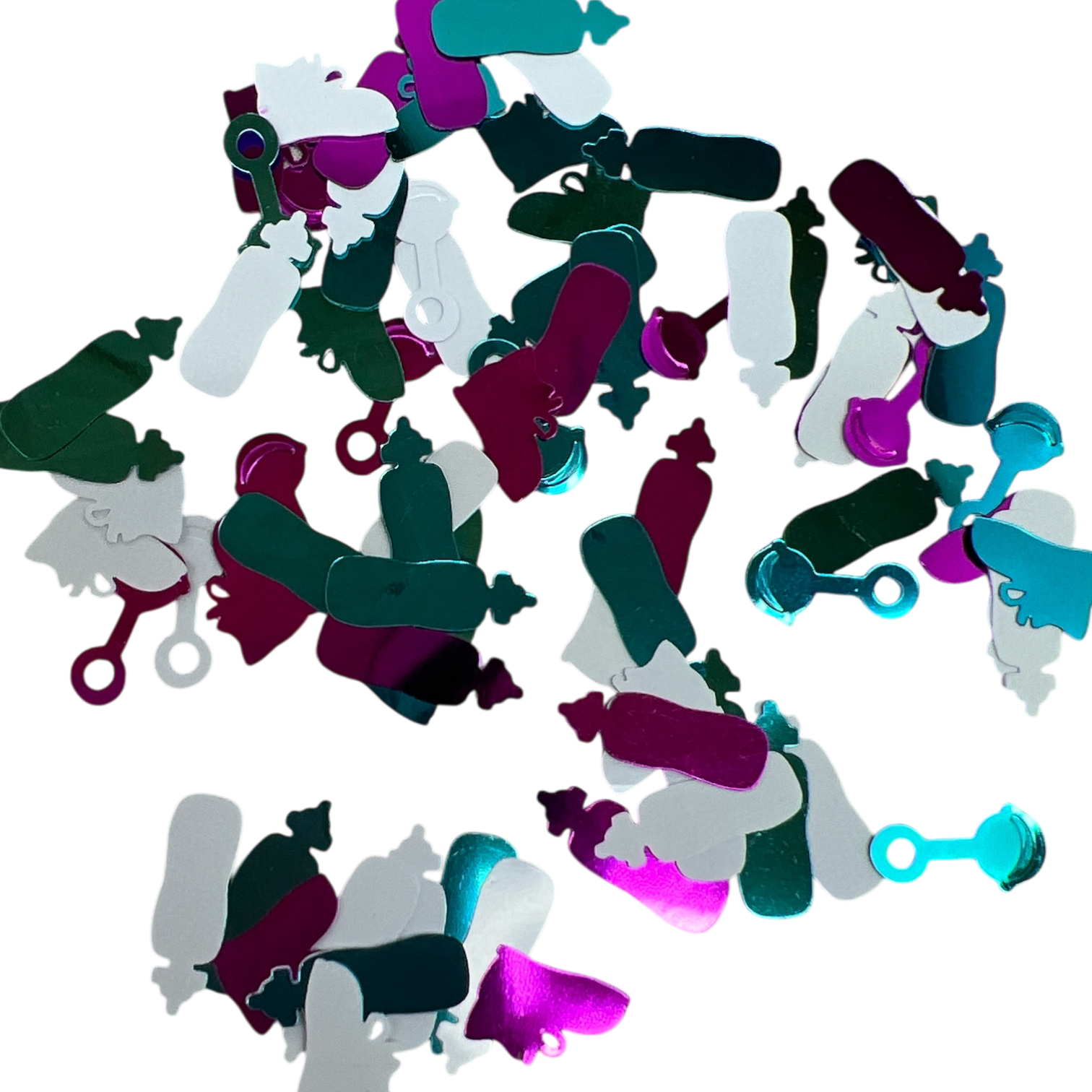 Add a touch of festive flair to your celebrations with the Contempo Colours Confettio's Infant Mix! This delightful confetti party mix features an assortment of charming baby-themed icons, including booties, baby bottles, and rattles, in a vibrant palette of pinks, blues, and whites. Perfect for creating a joyful atmosphere at any baby shower or welcoming party, this confetti is sure to bring smiles and excitement to your event!