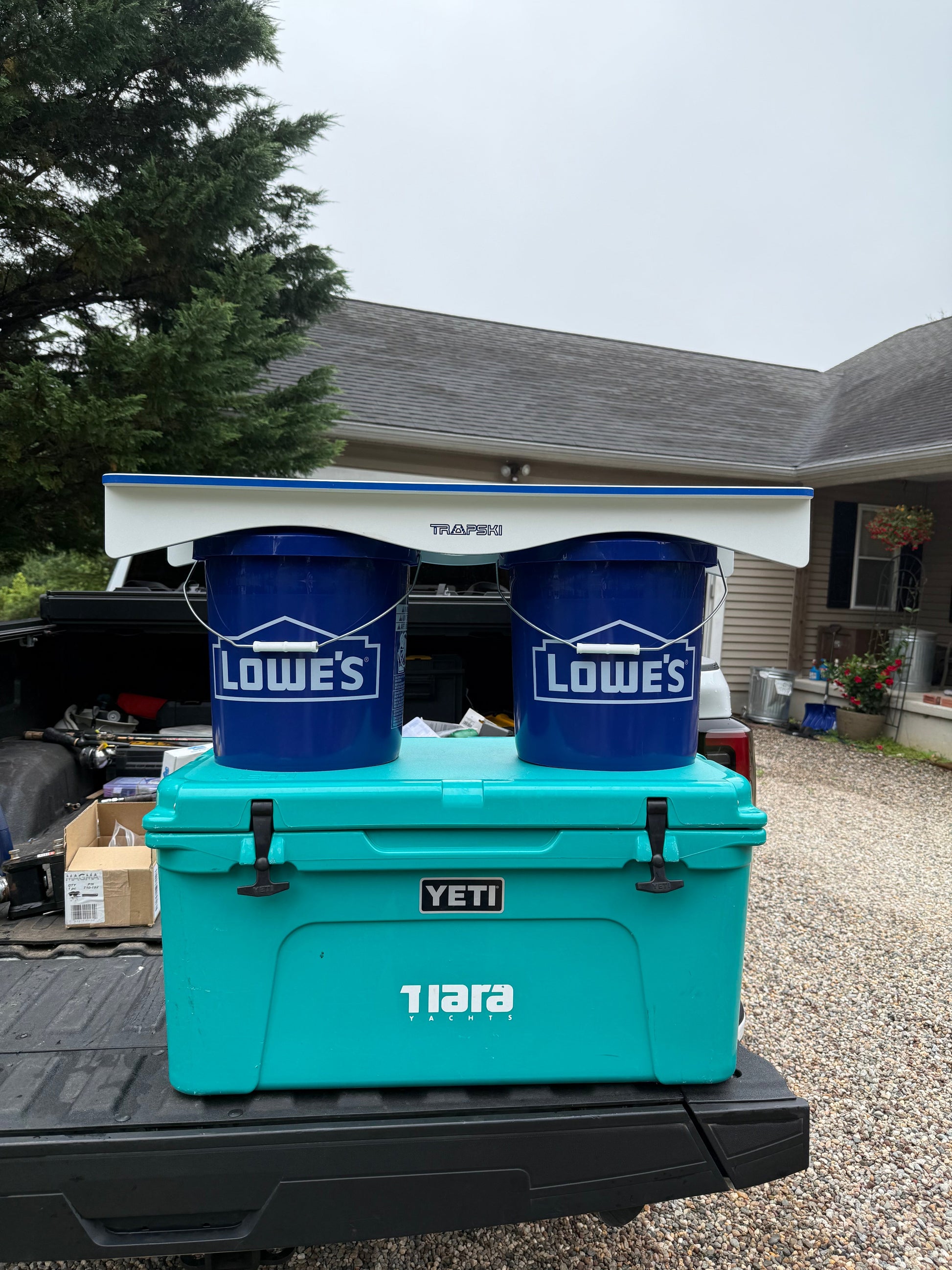 The TRAPSKI Double Fillet Table — the first mobile prep station for placing on top of buckets, coolers, or any flat surfaces. Crafted from marine-grade HDPE, UV-protected, and built to handle the harshest slicing and dicing conditions.