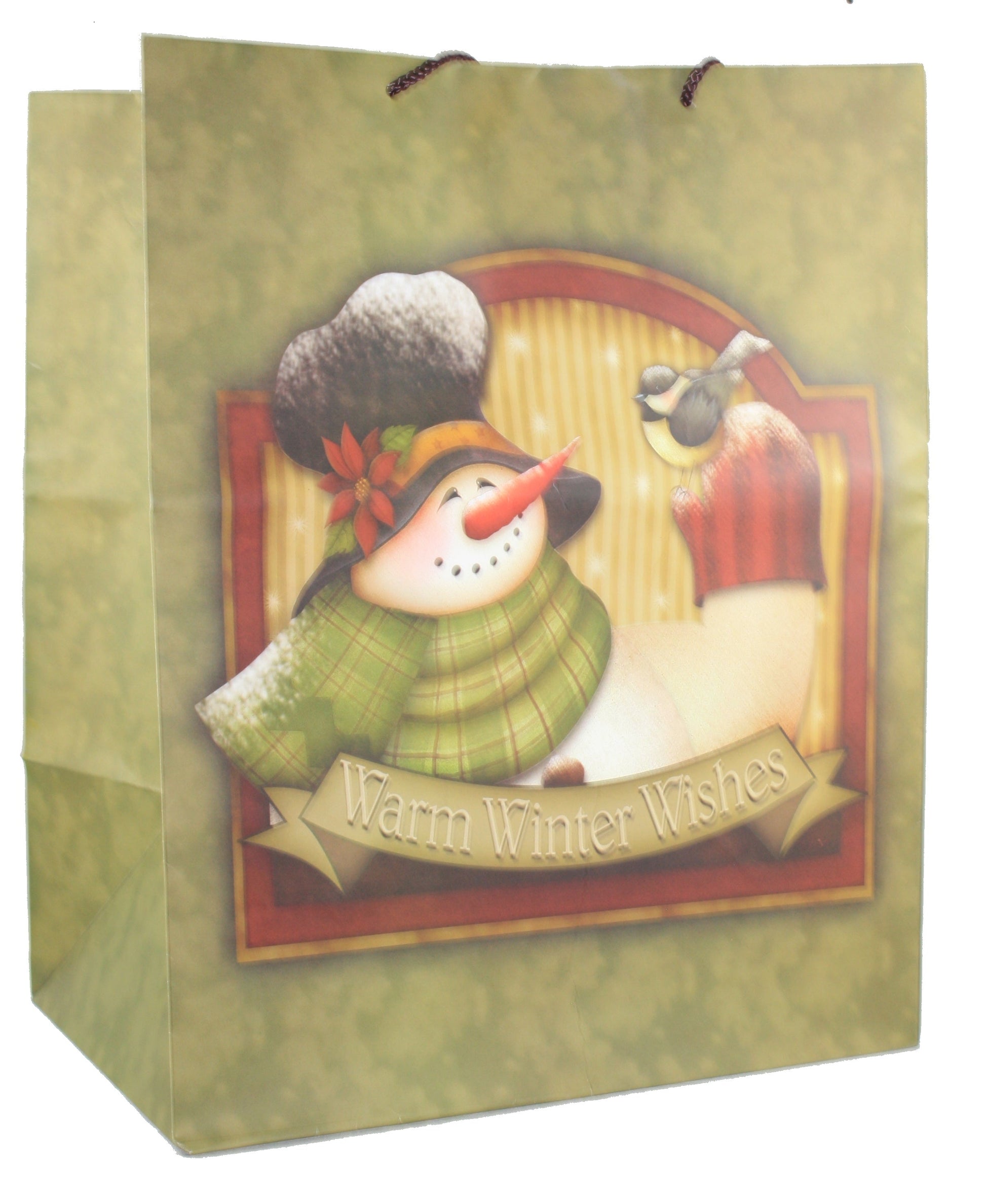 Matte Finish Deluxe Gift Bag - Snowman With Birds - Jumbo