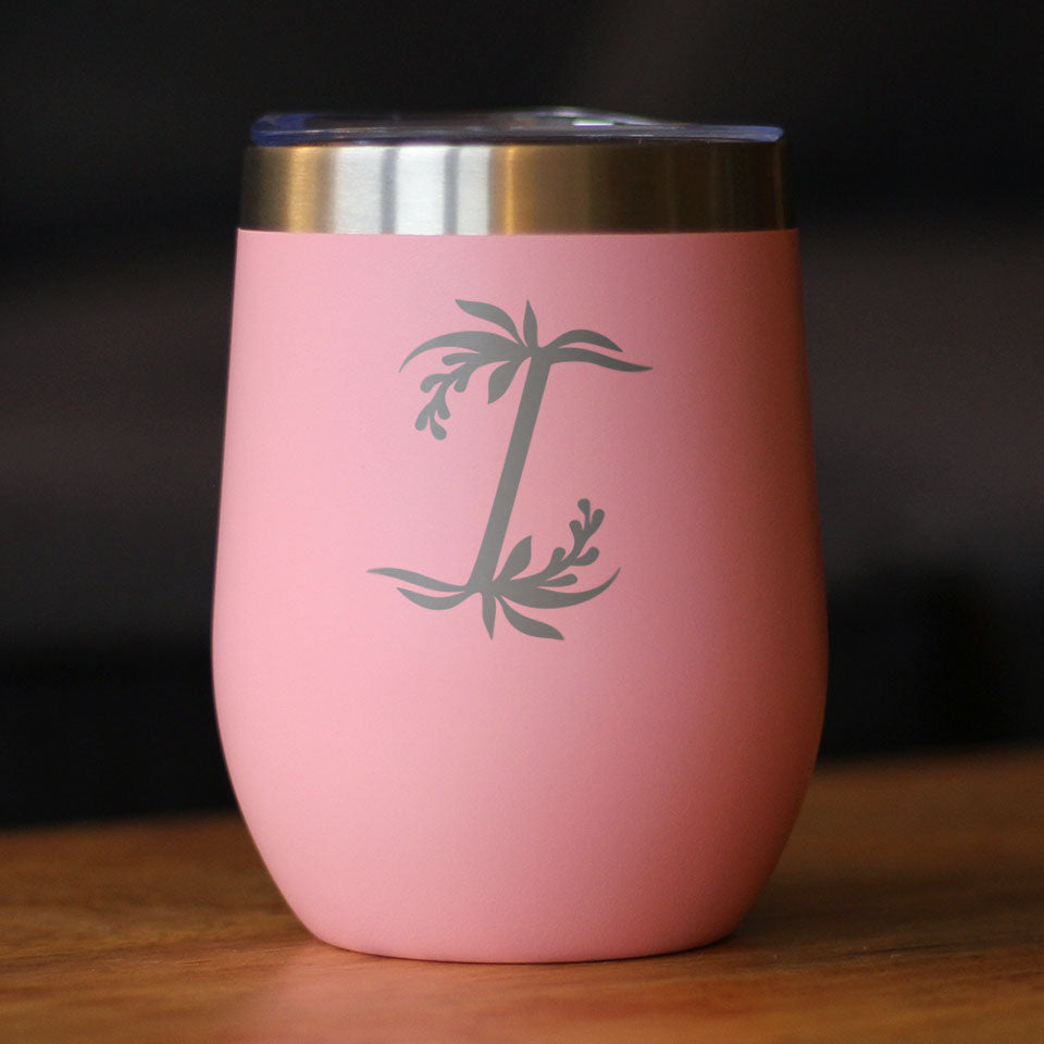 Monogram Floral Initial Letter I - Wine Tumbler