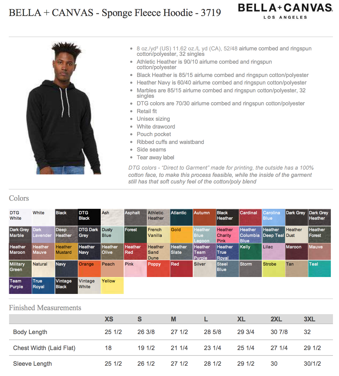 Bella+Canvas lightweight sponge fleece sweatshirt (not a heavy fleece). SIZING IS UNISEX - so for females, you will likely order a size smaller - but check the sizing charts for measurements to make sure