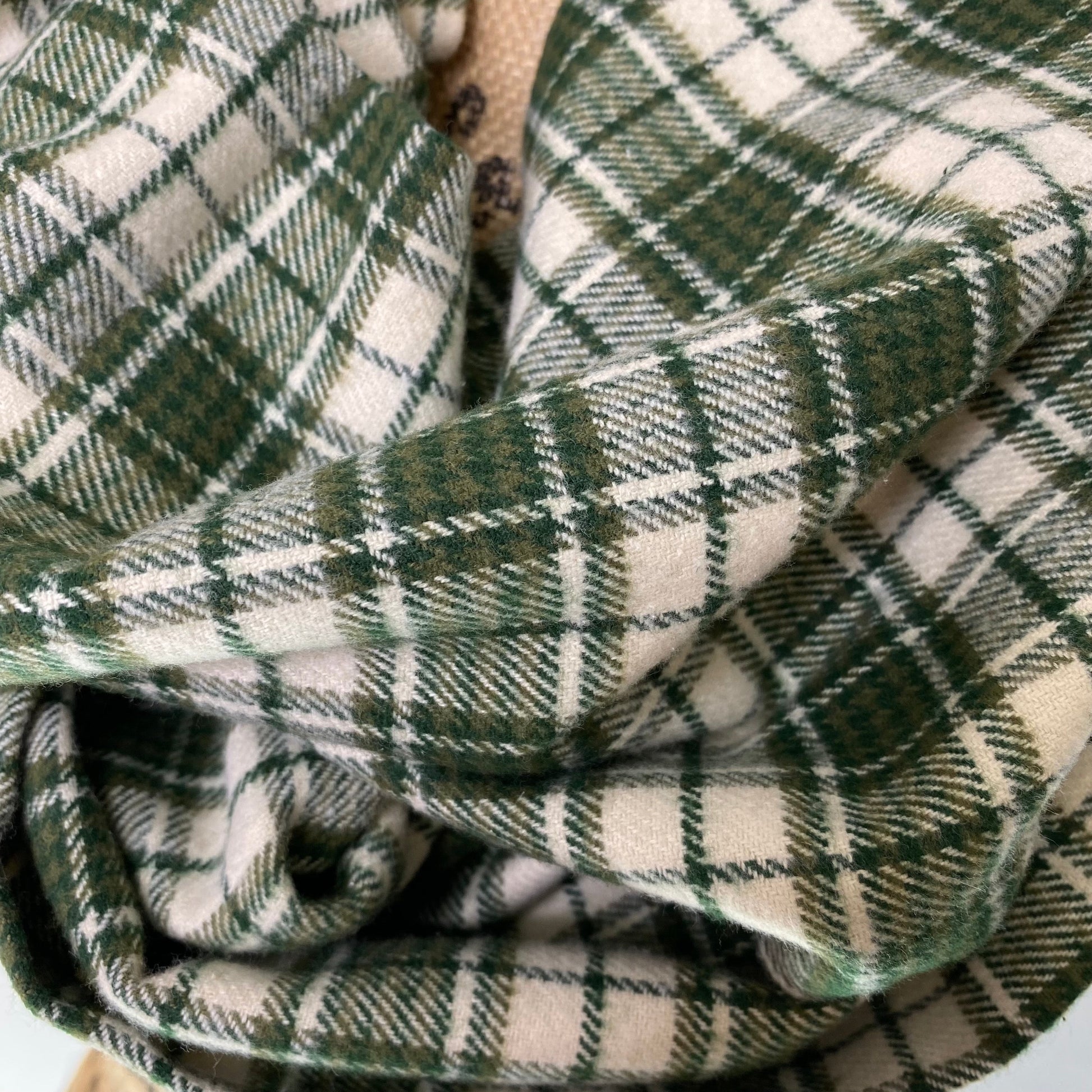 Infinity scarf is made with a 2 yard loop of medium weight and super soft 100% Cotton, yarn-dyed, double brushed flannel. Blanket Scarf Measures approximately 44" square. Large enough to wear like a chunky scarf or around your shoulders like a shawl or wrap.