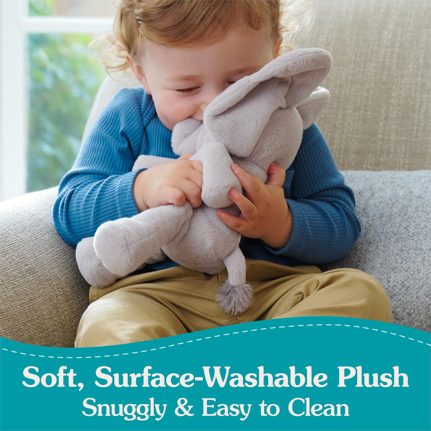 - Ears drop down to cover eyes for a fun peek-a-boo game