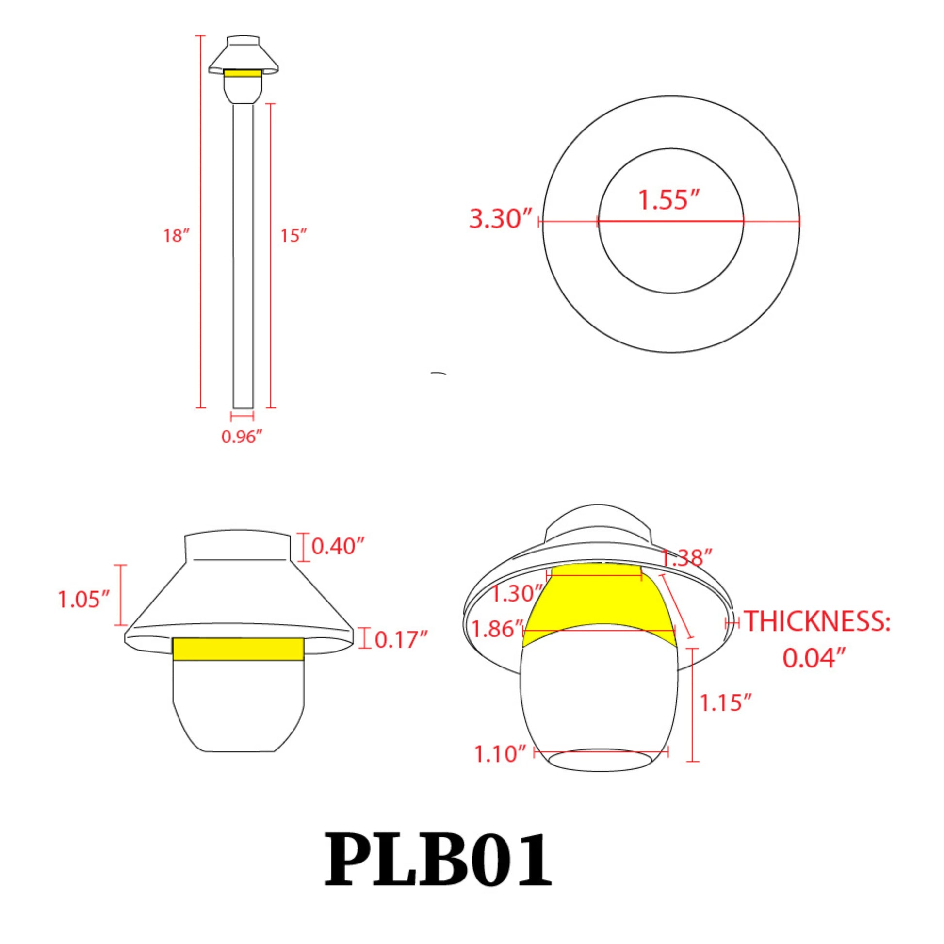 A G4 Base is used for a bi-pin G4 bulb of your choice. Your experience will be satisfactory through using this LED Path Light. The hat has dimensions of 3.5" x 3" and the pole is 15" in height. There is also an ABS ground spike to stake directly into the ground. This 12V LED Mushroom Light is ETL listed. It is also ideal for general site lighting, alleys, loading docks, doorway, bus stations, streets, pathways, and parking areas.