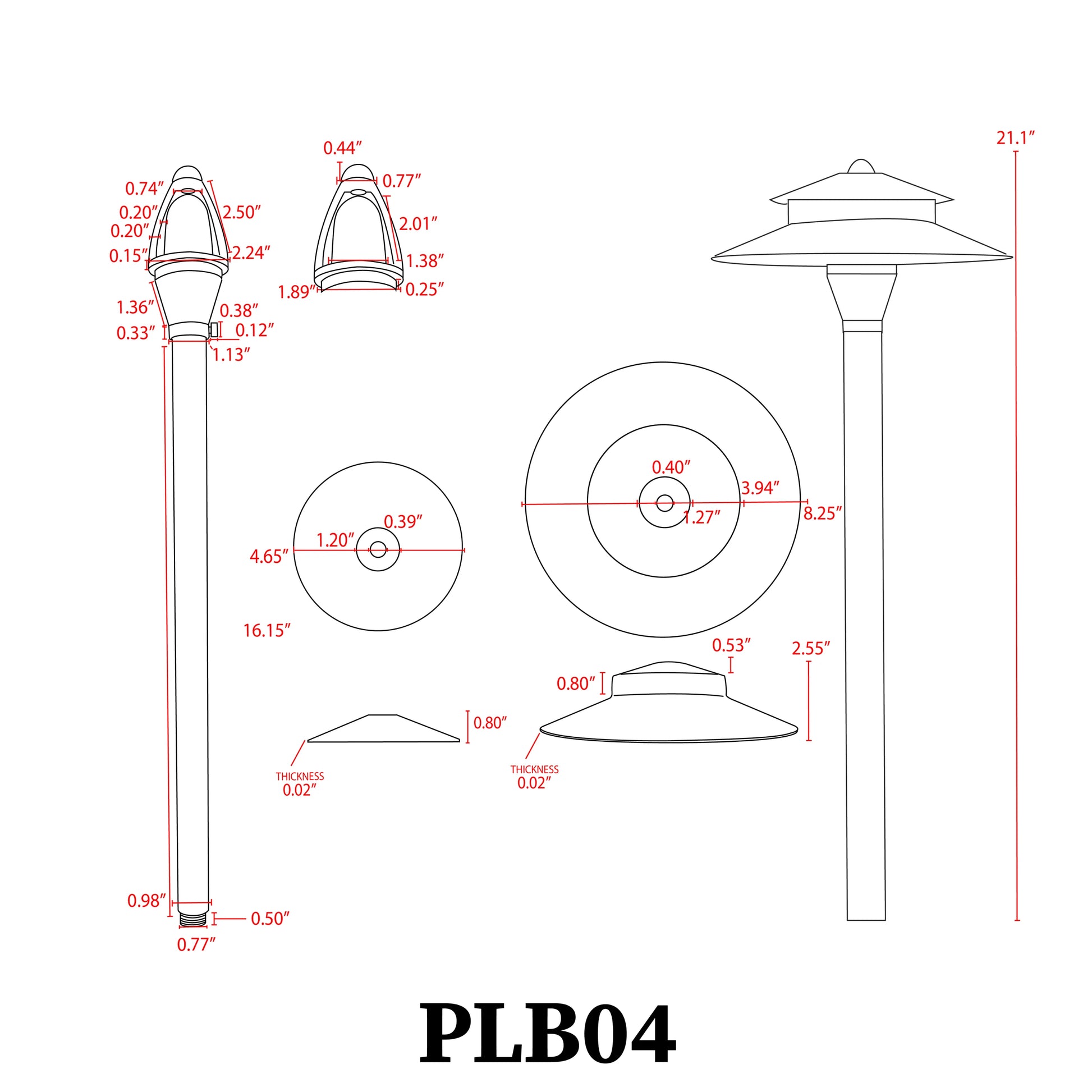 PLB04 mushroom-shaped two-tier pagoda low voltage path lights will accentuate a feeling of retro warmth with its classic brass finishing pagoda-style design to your exterior space. This high-quality LED landscape path light's body is made of heavy-duty cast brass, no powder coating just the natural patina beauty of brass which gives a solid construction for durability and lifetime of beauty.