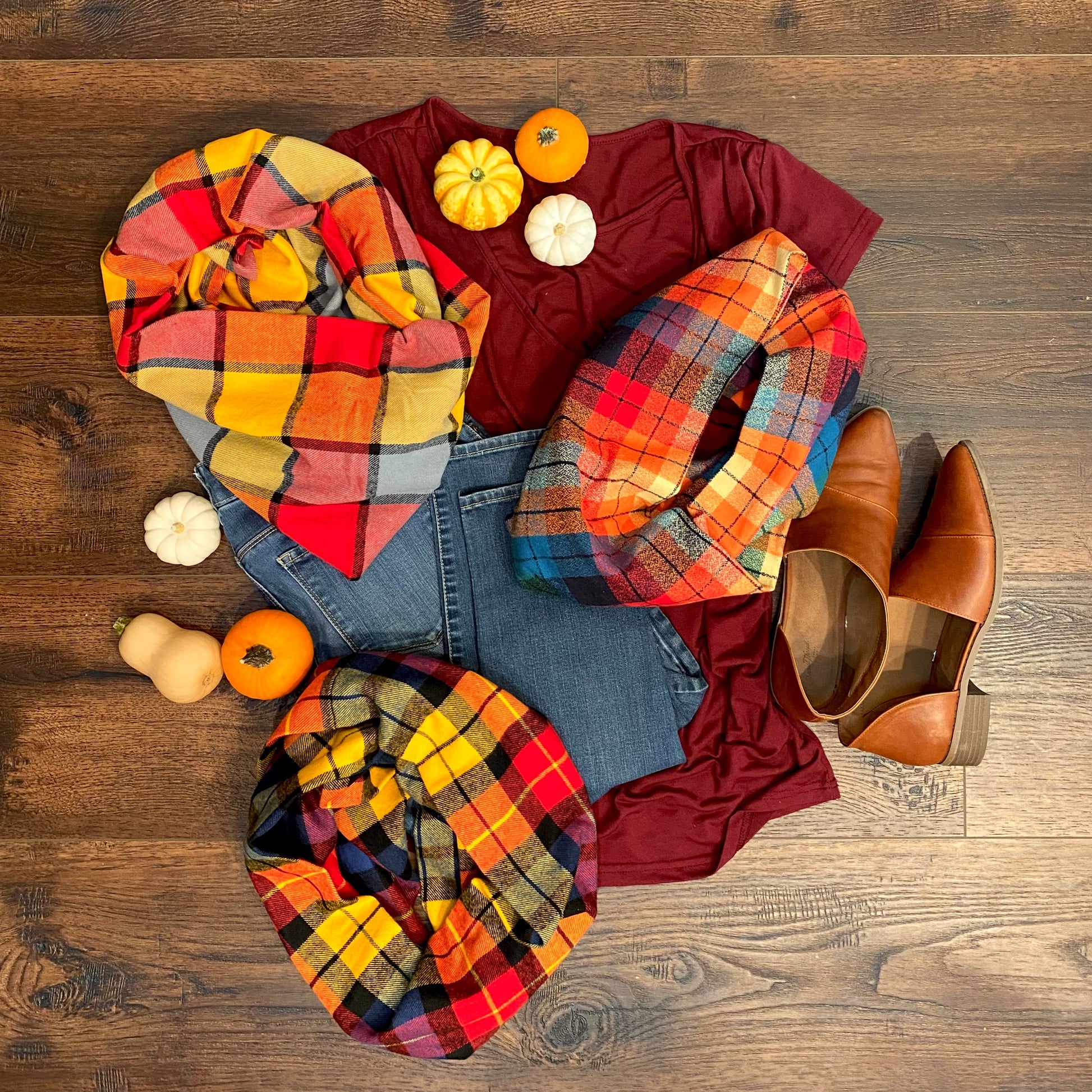 Rainbow of Color Heathered Plaid Flannel Infinity or Blanket Scarf