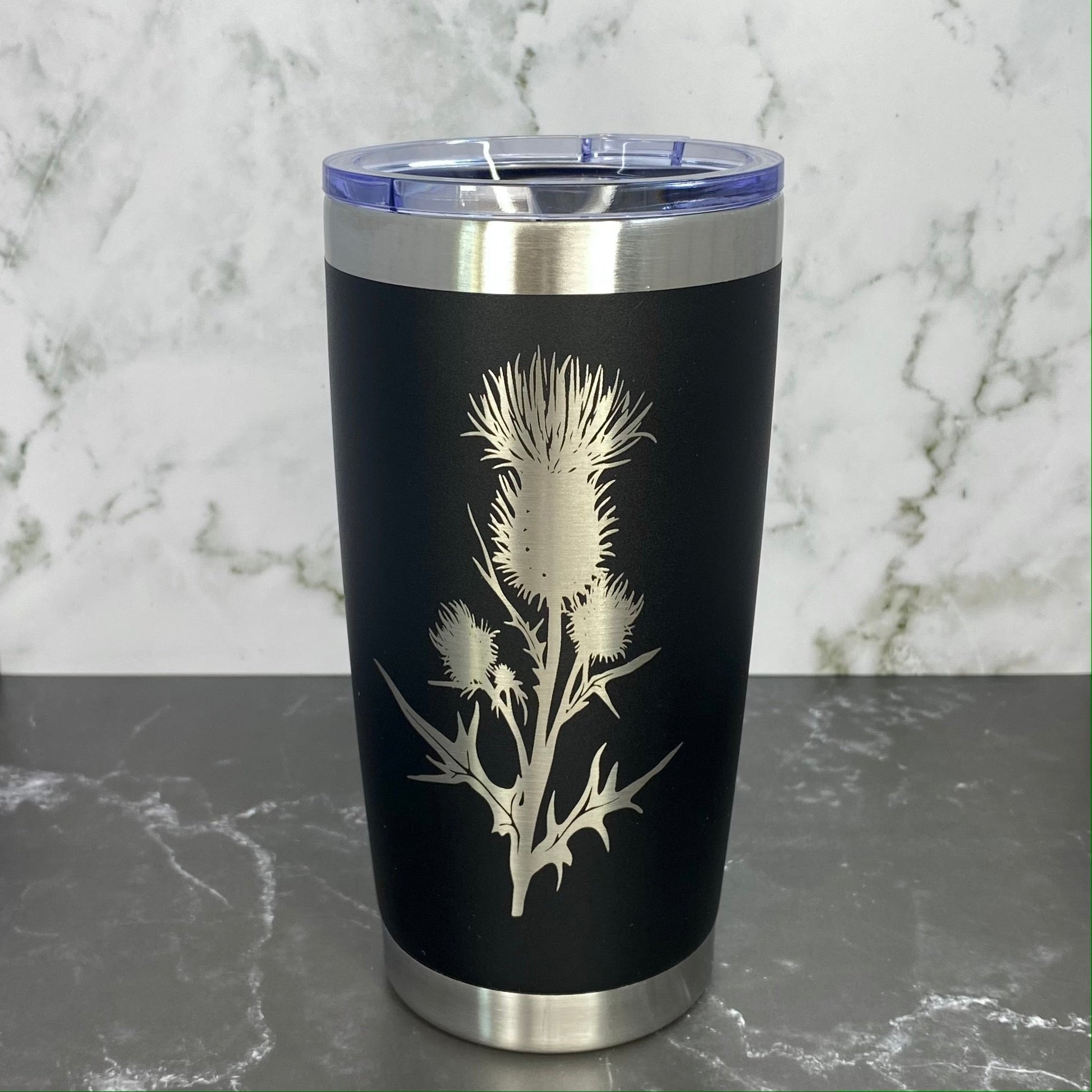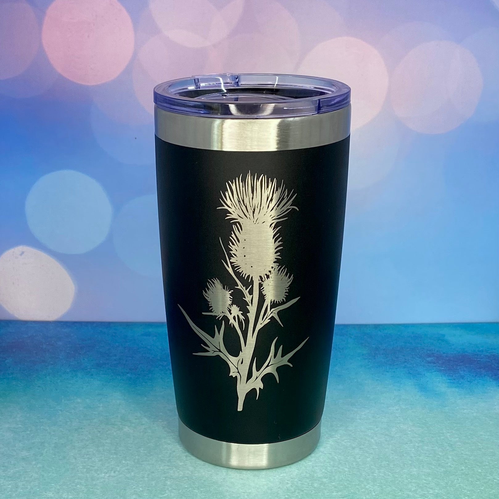 Scottish Thistle Flower Laser Engraved Powder Coated 20oz Double Walled Insulated Tumbler