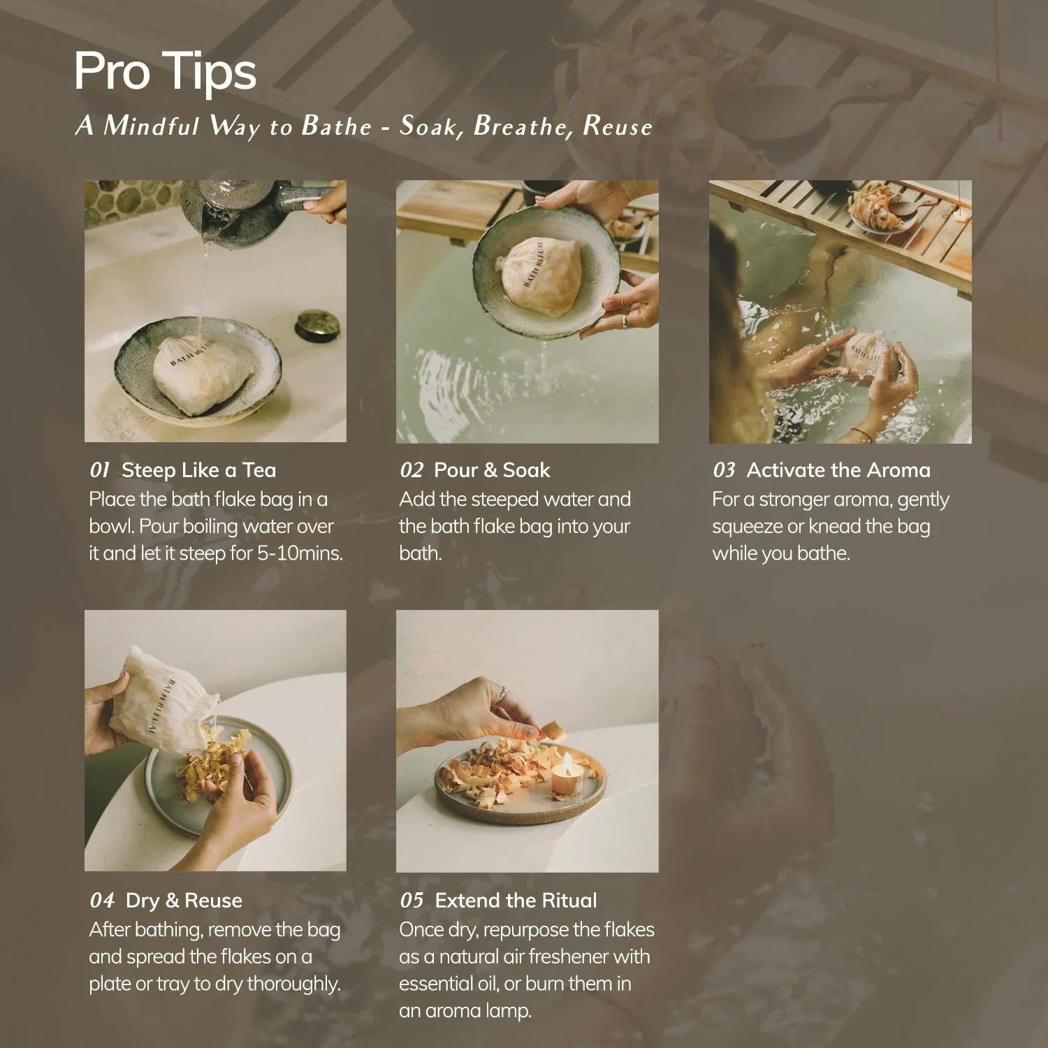 Reddish-toned and lightweight, Sugi flakes gently steam when soaked in hot water, infusing your bath with forest energy.
