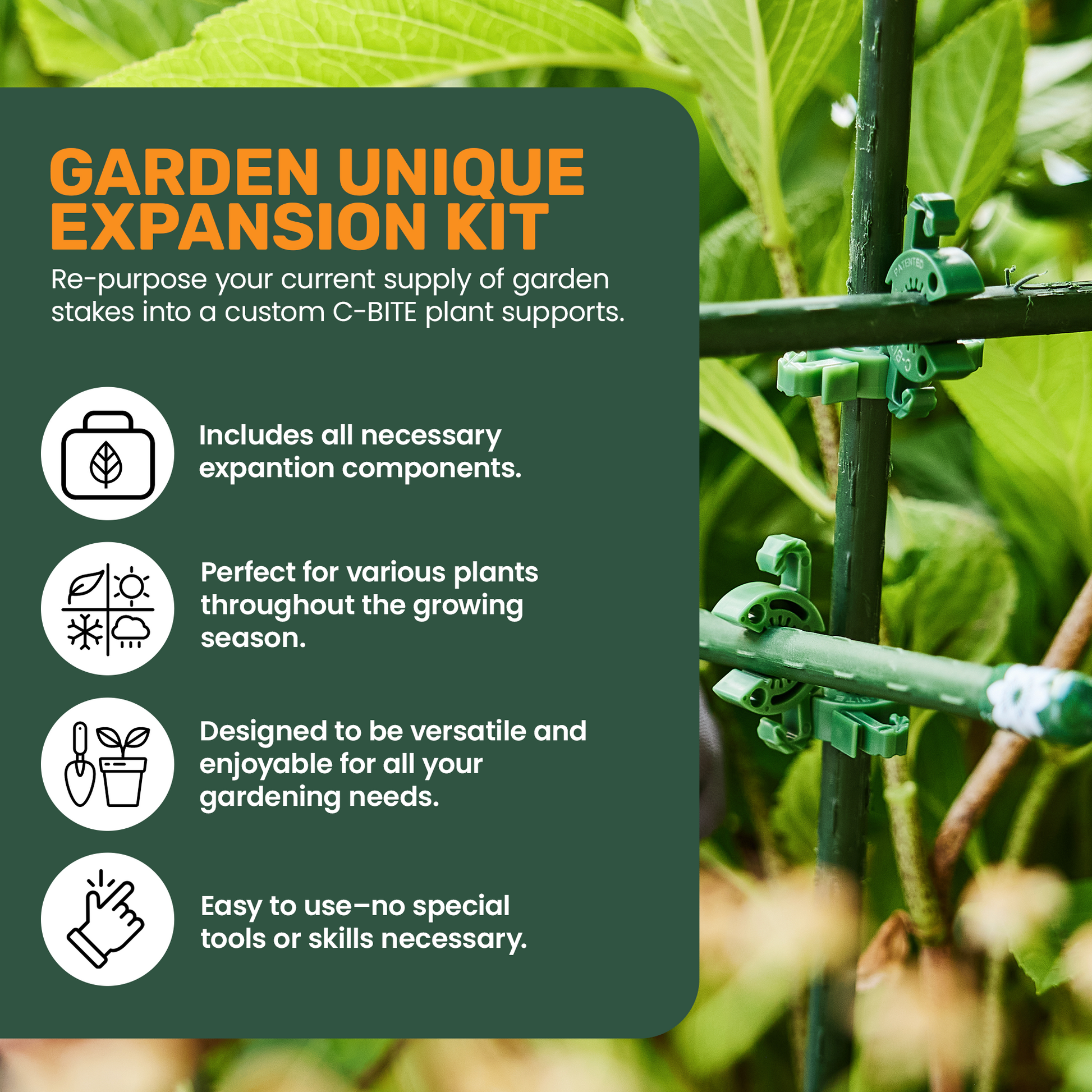 This unique expansion kit lets you either re-purpose your current supply of 7/16" garden stakes into a custom C-BITE plant supports or get an all-in-one solution: